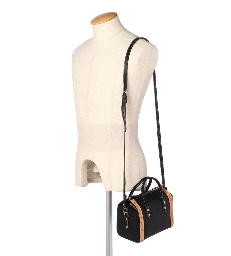 コロンとしたフォルムがエレガントなボストンバッグ。ショルダーベルトをセットして2WAYで使えるのがうれしい。サイドに重ねたロゴが、ほど良いポップさを加味しているのもポイントです。