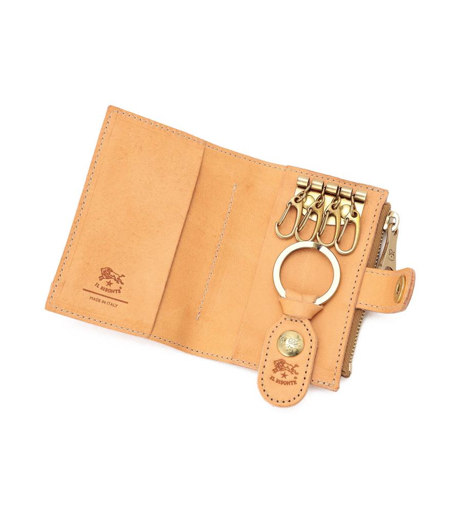 心地良く手に馴染むレザーのキーケース。持ち運びやすいサイズなうえ小銭も収納でき、使い勝手は抜群。サイドにはロゴのパイピングを配して、モダンなアクセントに。