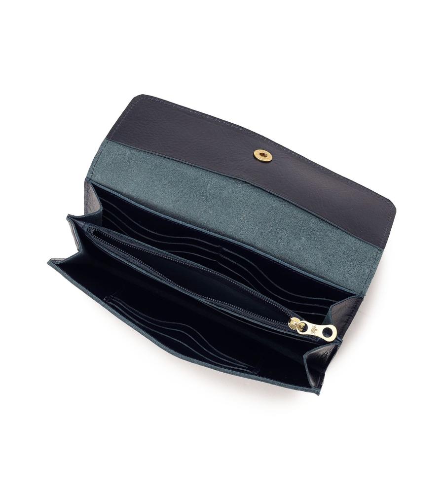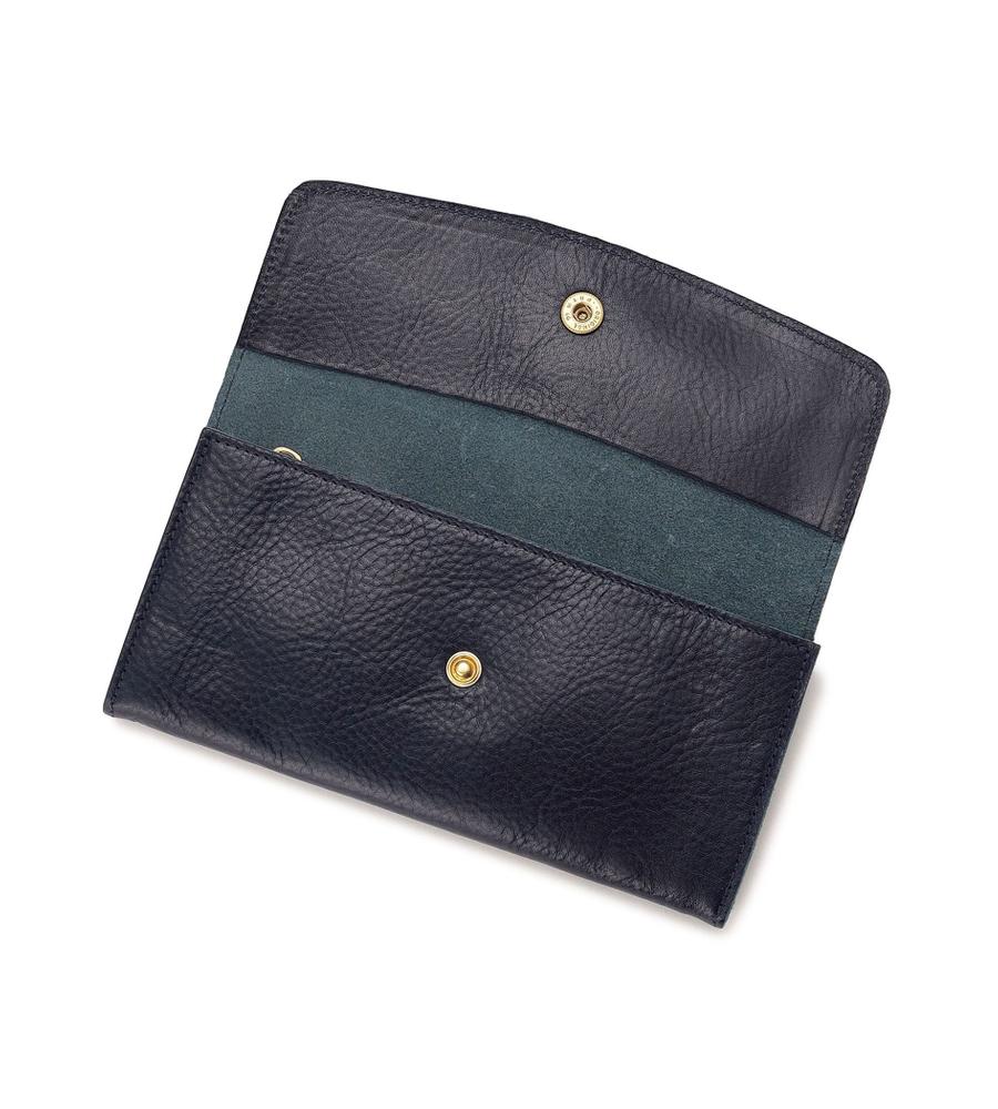 シンプルかつベーシックゆえに、素材の上質さが際立つロングウォレット。フラップ付きのスマートなデザインは、飽きが来ず長く愛用できます。中央にコインポケットを備え、紙幣やカードもふんだんに収まるサイズ感。