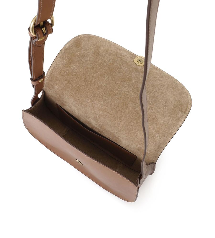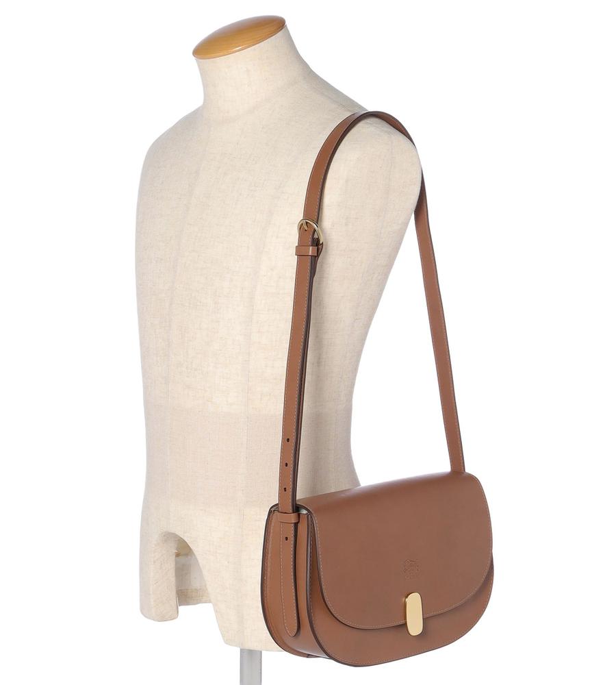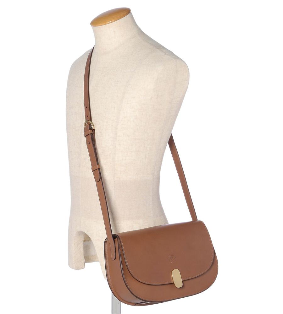 コロンとした丸みのあるフォルムのショルダーバッグ。ゴールドの留め具、上質なレザーで仕立てたエレガントなムード。長さ調整可能なストラップ付きで、ななめがけ、ショルダーと2通りの持ち方が楽しめます。おしゃれなお出かけスタイリングが完成します。