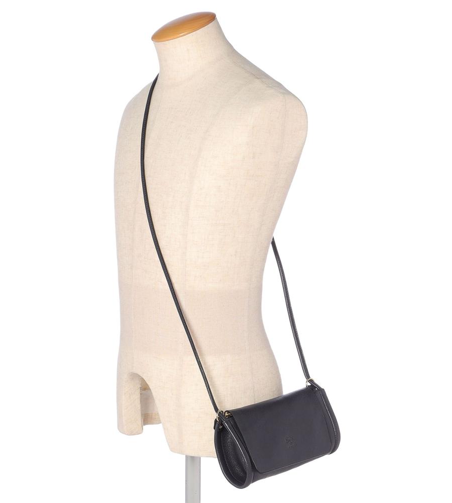 ブランドの特徴でもある質の高いレザーで仕立てたクロスボディバッグ。フラップのブランドロゴの型押しがおしゃれなアクセント。丸みのあるフォルムとコンパクトなサイズ感がスタイリッシュなデザイン。お出かけにスタイリングぴったりなアイテムです。