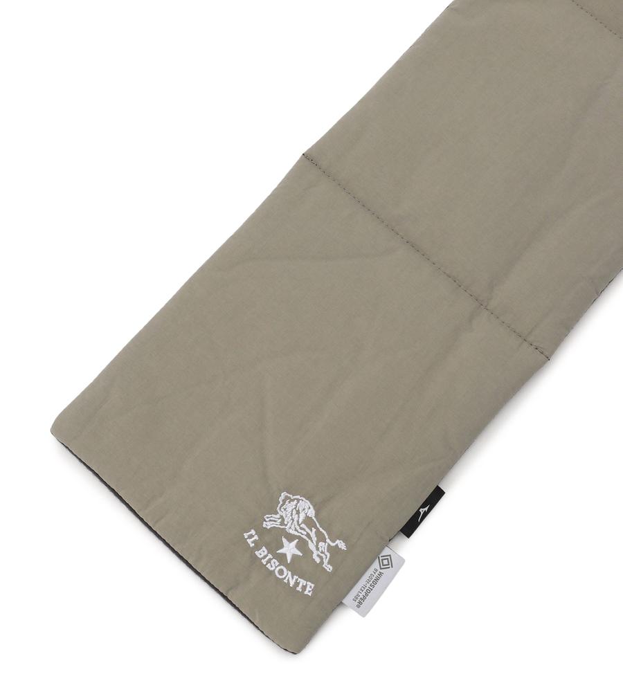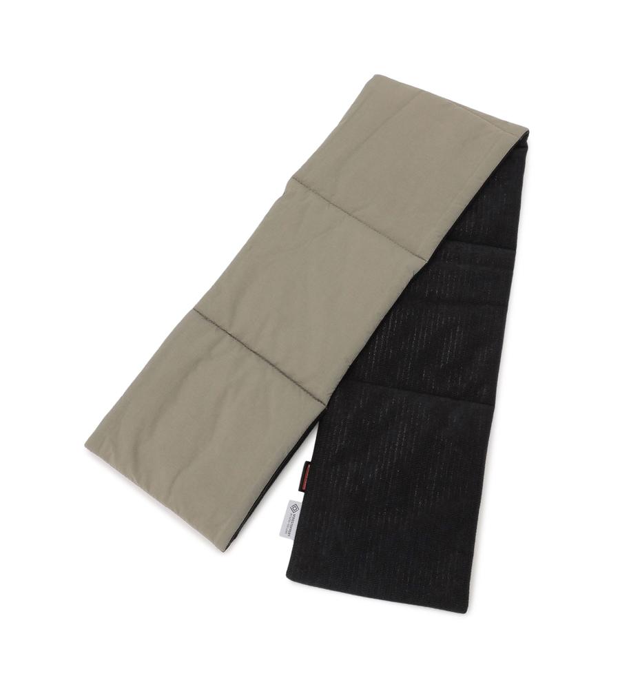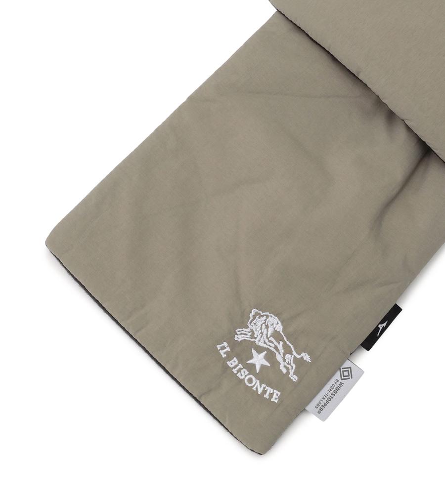 総合スポーツメーカー「Mizuno (ミズノ)」とのコラボレーションアイテム。バイソンロゴ刺繍が存在感を放つマフラーは、表地に軽量のタスランナイロンを使用。WINDSTOPPER(R) プロダクト by GORE-TEX LABSの裏地、中綿、保温設計のリフレクションギア、吸湿発熱素材のブレスサーモを組み合わせ、防風・保温機能性を実現しています。