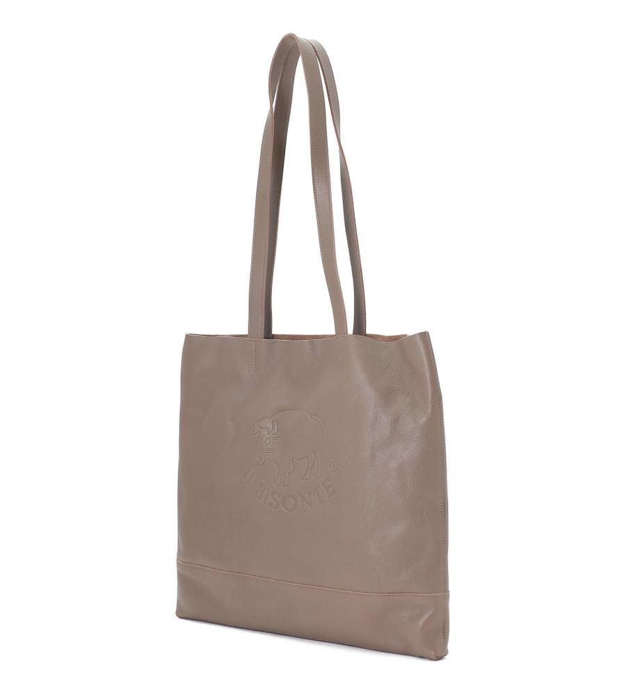 ロゴとブランドマークであるバッファローを大きくフロントにあしらったインパクトのあるデザインのトートバッグ。ブランドの特徴でもある上質なレザー素材も魅力。シンプルなスクエアフォルムで使い勝手も抜群です。