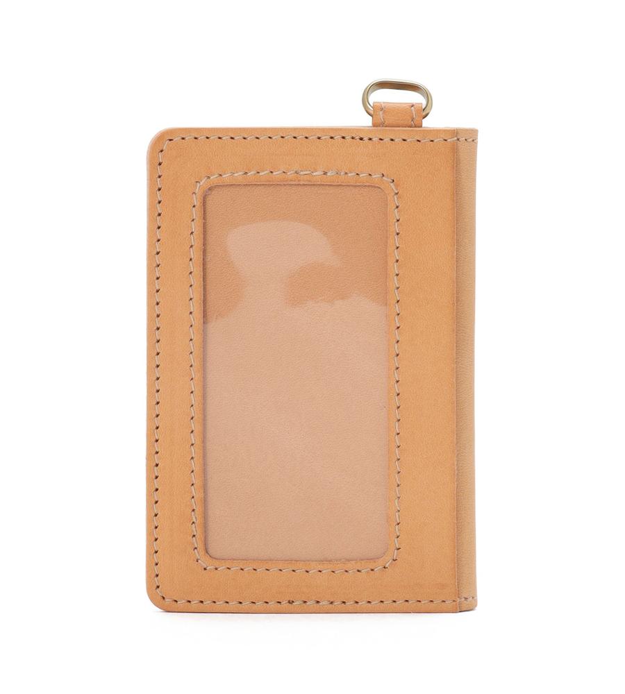 シンプルな2つ折りのフォルムのカードケース。フラップ部分のブランドロゴタグがおしゃれなデザインアクセント。カードケースと便利な透明窓ケース付き。内側にもブランドロゴの型押しで細部までこだわりを感じられるデザインのアイテムです。