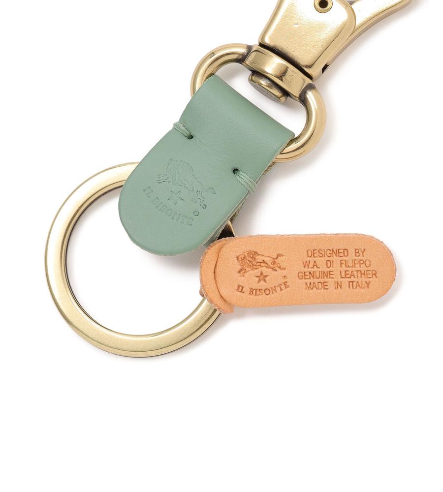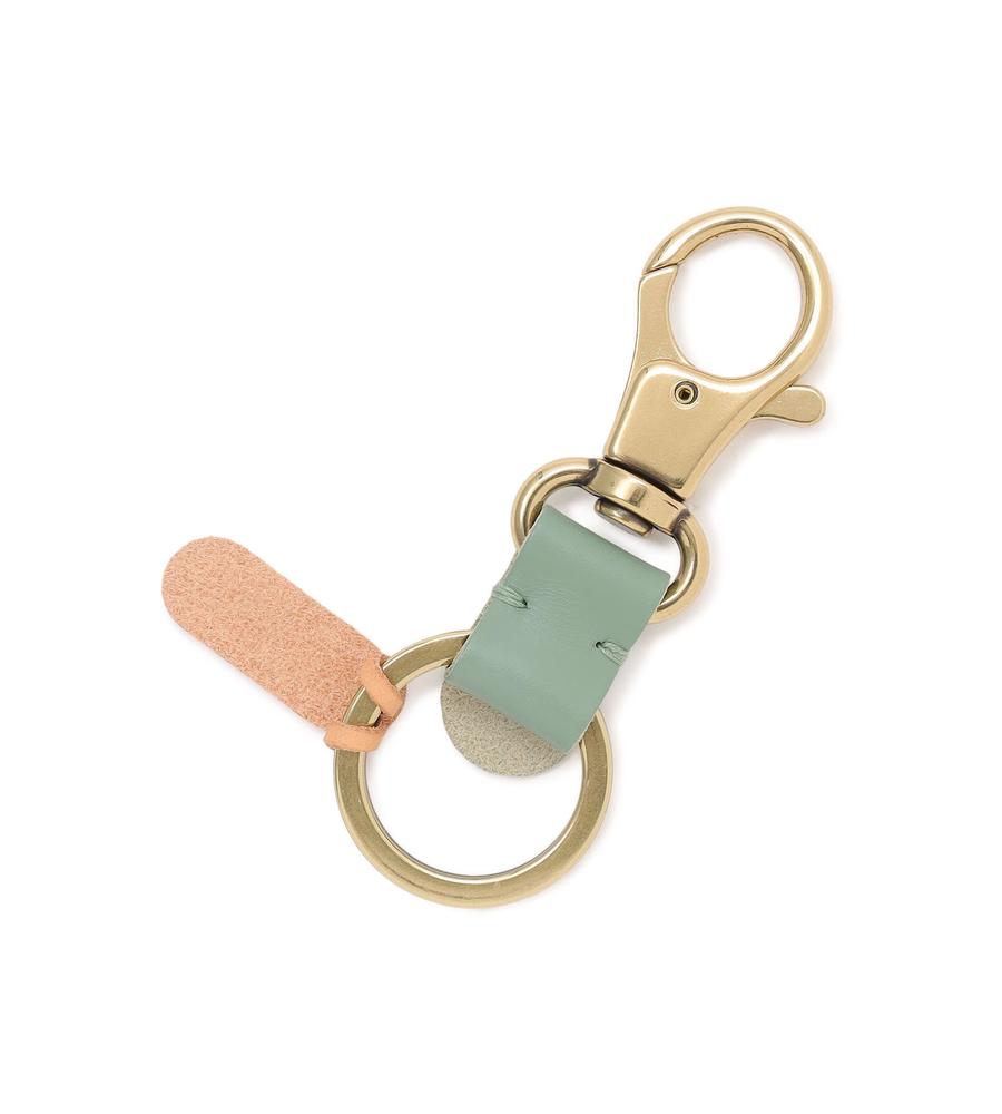 きれいな色使いのレザーと、きらりと輝く金具のマッチングがエレガントなキーリング。毎日使う実用品こそ、こだわりを持って選びたい方におすすめです。
