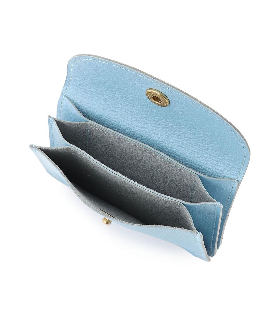 レター型のフラップデザインが大人可愛いカードケース。きらりと輝くスナップがアクセントに。上質感とフェミニンな華やかさを兼ね備えた一品。