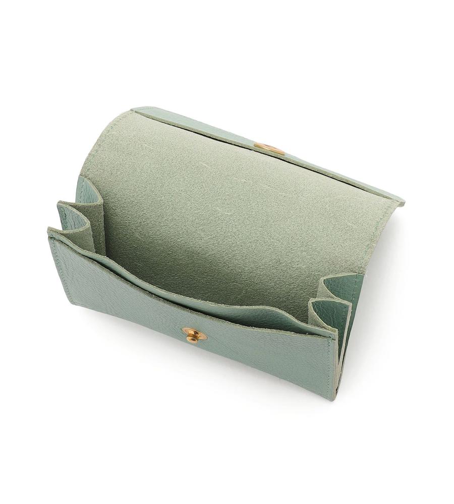 フラップ部分にシグネスチャロゴのバッファローを型押ししたカードケースです。何かと増えがちなカード類がまとめて入る収納力が魅力、口が大きく開くデザインで出し入れもしやすく仕上げました。使うほどに手に馴染む本革ならではの質感もポイント、ミニウォレットとしてもお使いいただけるアイテムです。