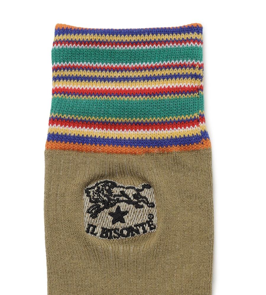 マルチカラーのボーダーとブランドアイコンの刺しゅうでエッジを効かせたソックス。足元からのおしゃれを楽しみたいシーンにも取り入れたい一足です。