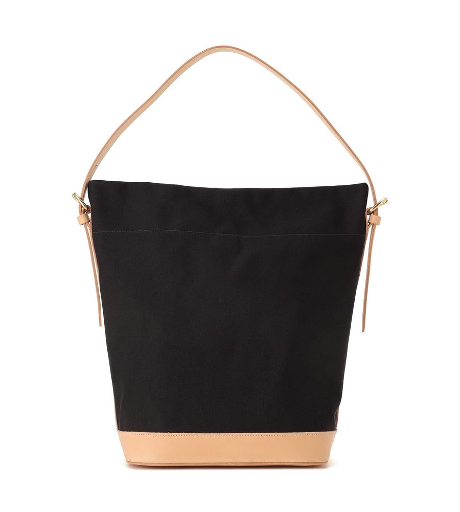 丈夫で軽やかなキャンバス生地のショルダーバッグ。ストラップや底部には牛革を使用し、高級感と強度を高めています。大きめなサイズで収納力もたっぷり。間口は開閉しやすいスナップ仕様、ストラップは長さ調整可能です。