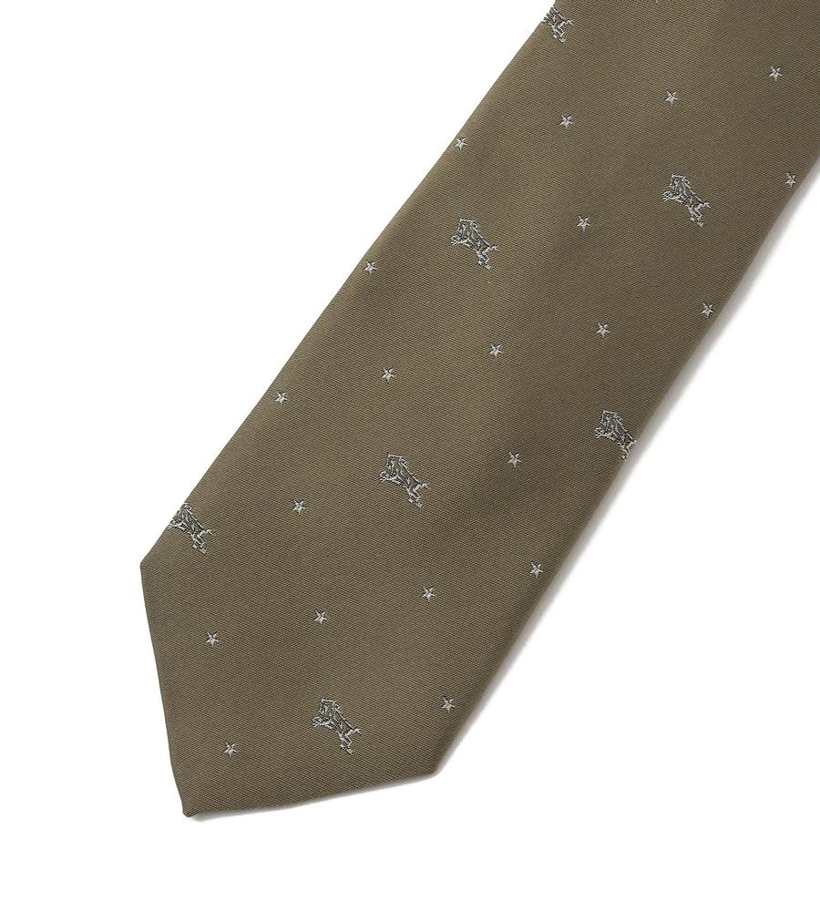 バッファローやスターモチーフの刺繍を配したネクタイ。自然な光沢感が上品な絹素材を使用。裏地にはマルチストライプ柄をあしらい、細部まで手の込んだデザインに。胸元をエレガントに演出し、幅広いシーンに最適な一本です。