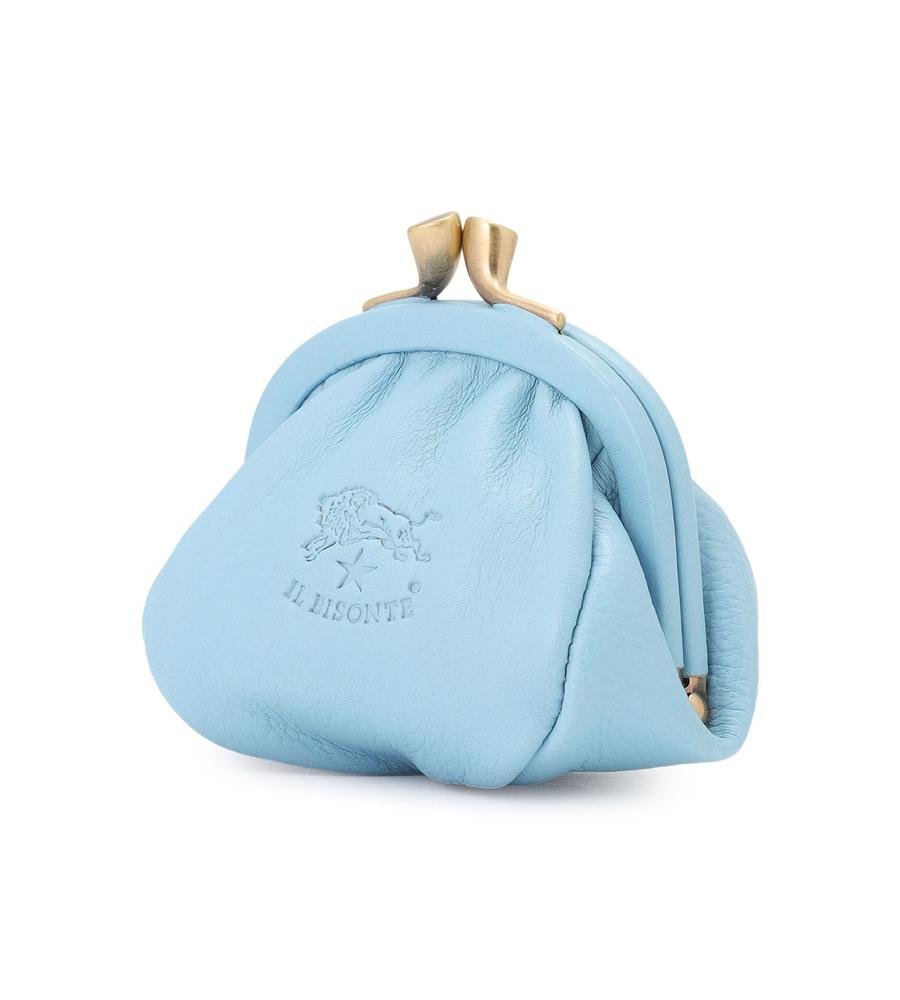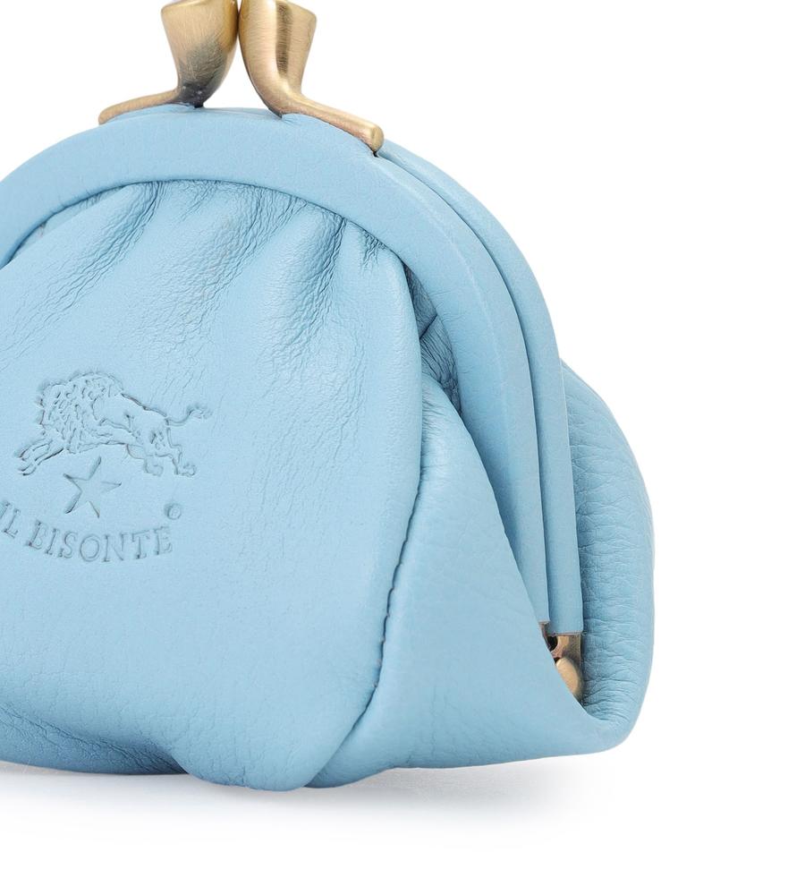エレガントなレザーと素朴ながま口デザインとのマッチングがおしゃれなコインパース。ブランドロゴの刻印や、きれいなパステルカラーもポイント。
