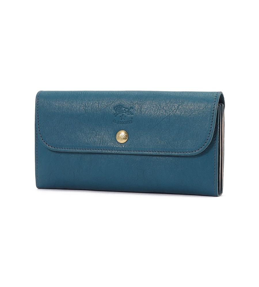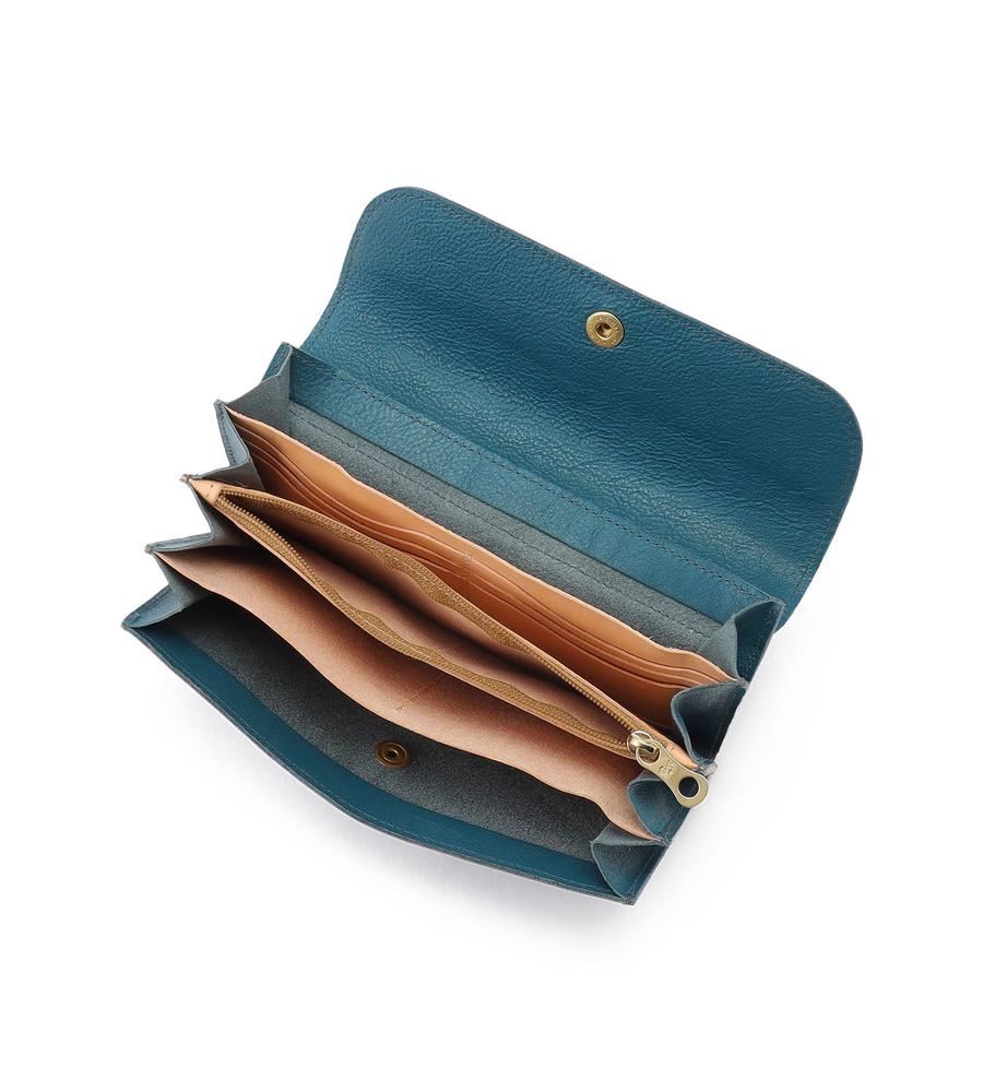 ブランドの特徴である上質なレザーで仕立てたロングウォレット。ブランドロゴの型押しとボタンがスタイリッシュなデザインポイント。カードの仕切り、チャック付きのコインケース、充実のポケットで使い勝手も抜群のアイテムです。