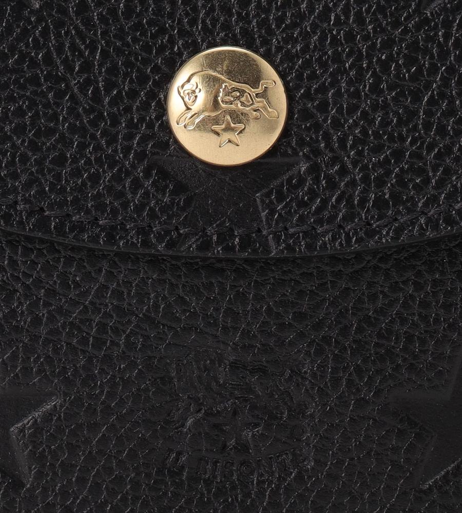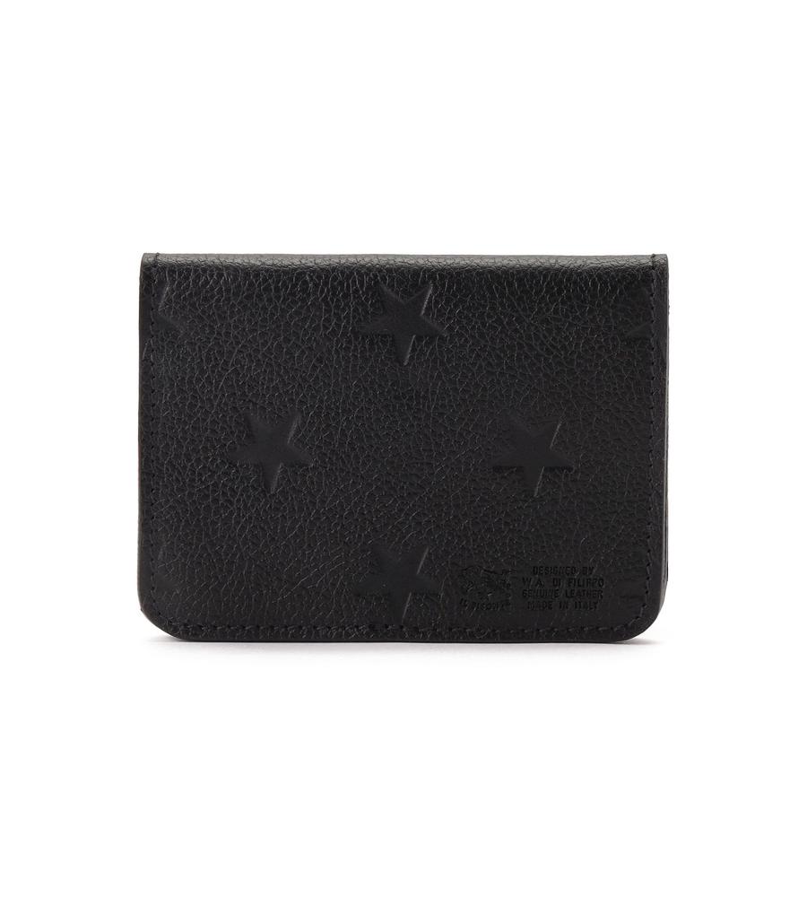 ブランドの特徴でもある上質なレザーで仕立てたカードケース。ブランドロゴと星柄の型押しがスタイリッシュなデザイン。ゴールドのボタンがエレガントなポイント。コンパクトなフォルムながら、カードの整理に便利な仕切りと立体的なフォルムも魅力です。