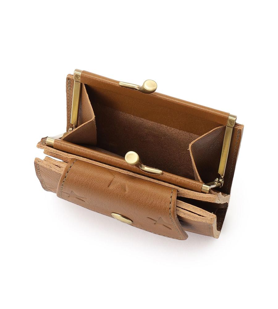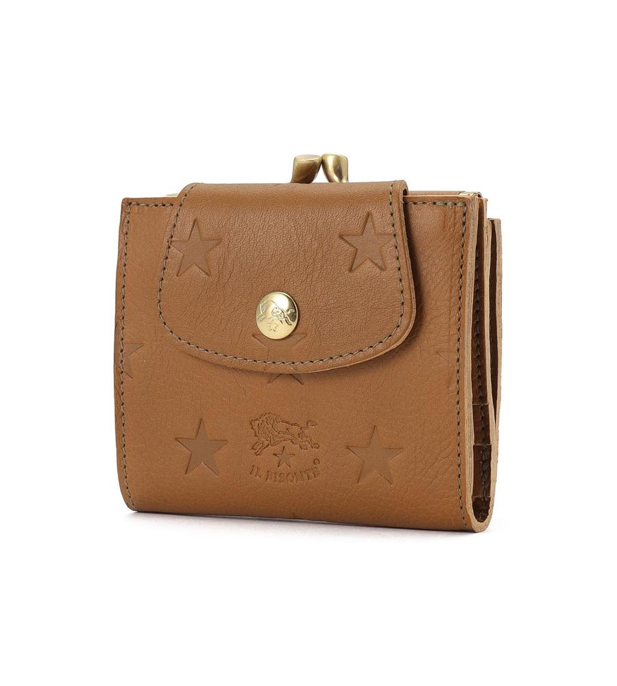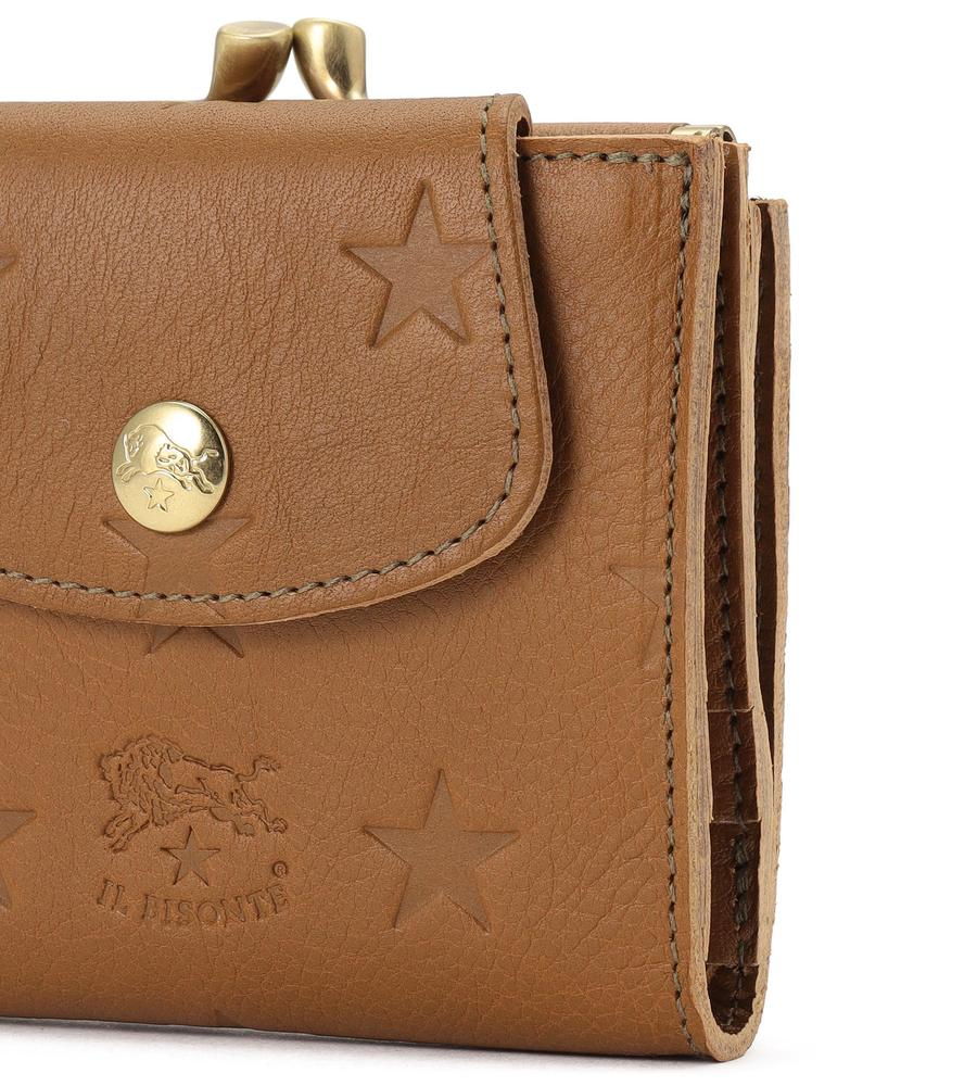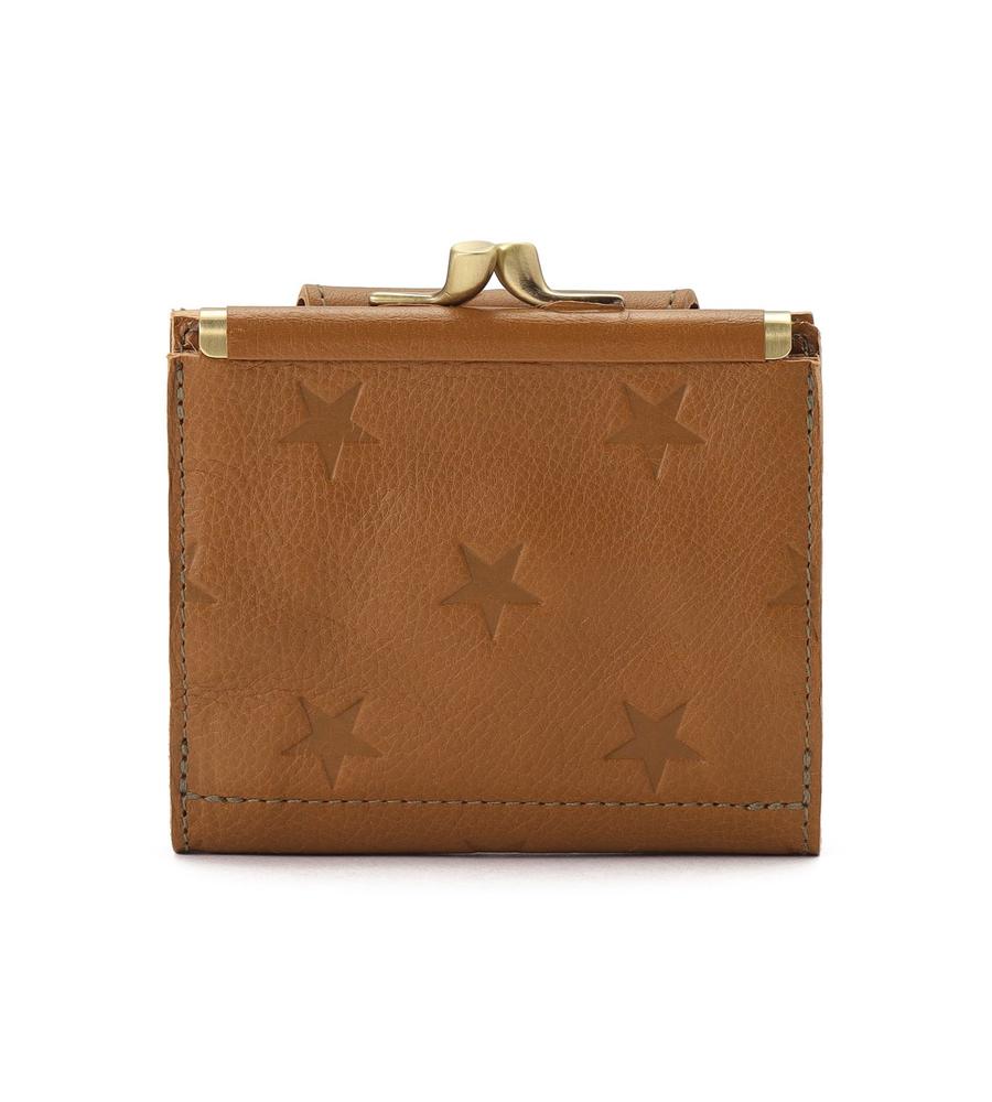 ブランドの特徴でもある上質なレザーで仕立てた2つ折り財布。ブランドロゴと星柄の型押しがスタイリッシュなデザイン。小銭入れの部分はがま口で中が見やすくコインが探しやすい仕様。充実のカードケースで使い勝手抜群のアイテムです。