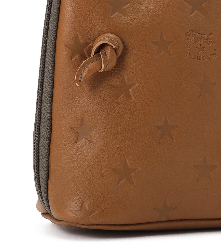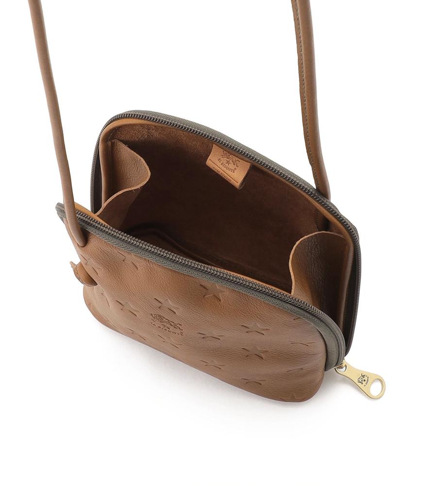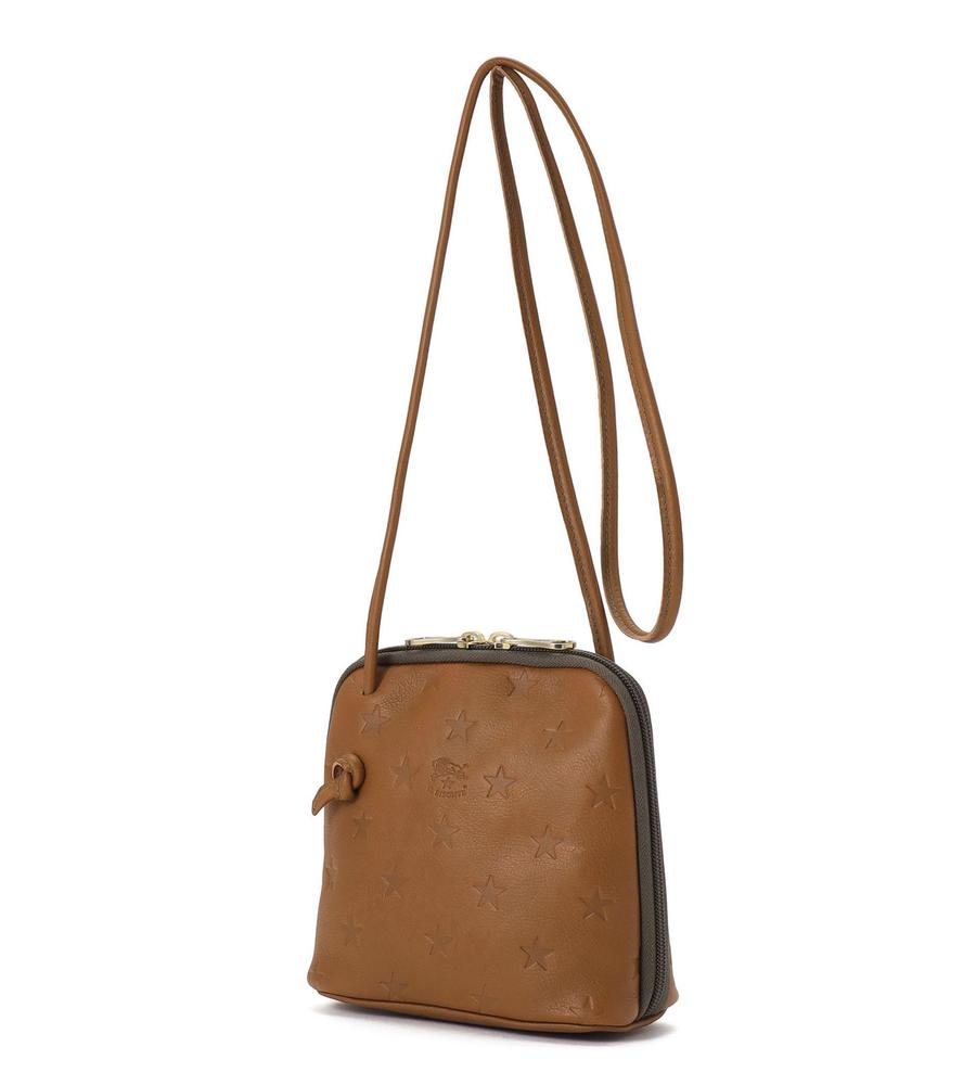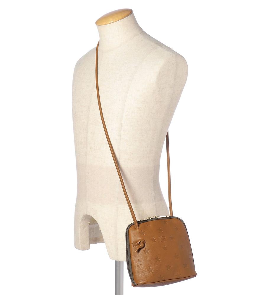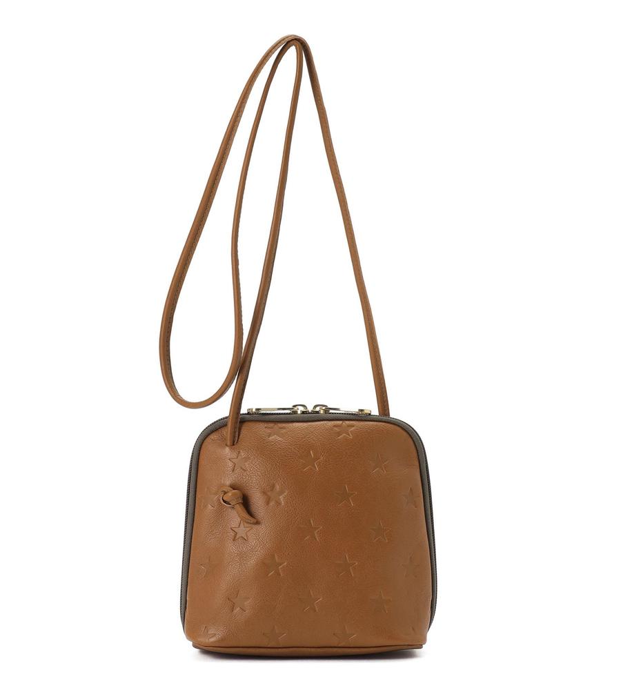 ブランドを象徴するスターモチーフを型押ししたクロスボディバッグ。小ぶりなスクエアフォルムと細ストラップにより軽やかな持ち心地です。大きく開くWファスナー式の間口もポイント。ストラップを結ぶことで長さ調整も可能です。