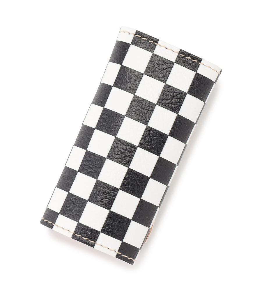 チェッカーボード柄がおしゃれなデザインのレザーキーケース。ボタンには、ブランドロゴマークの型押しがさりげなくスタイリッシュなデザイン。簡単に取り外し可能なナスカンタイプ。デイリーに活躍するアイテムです。