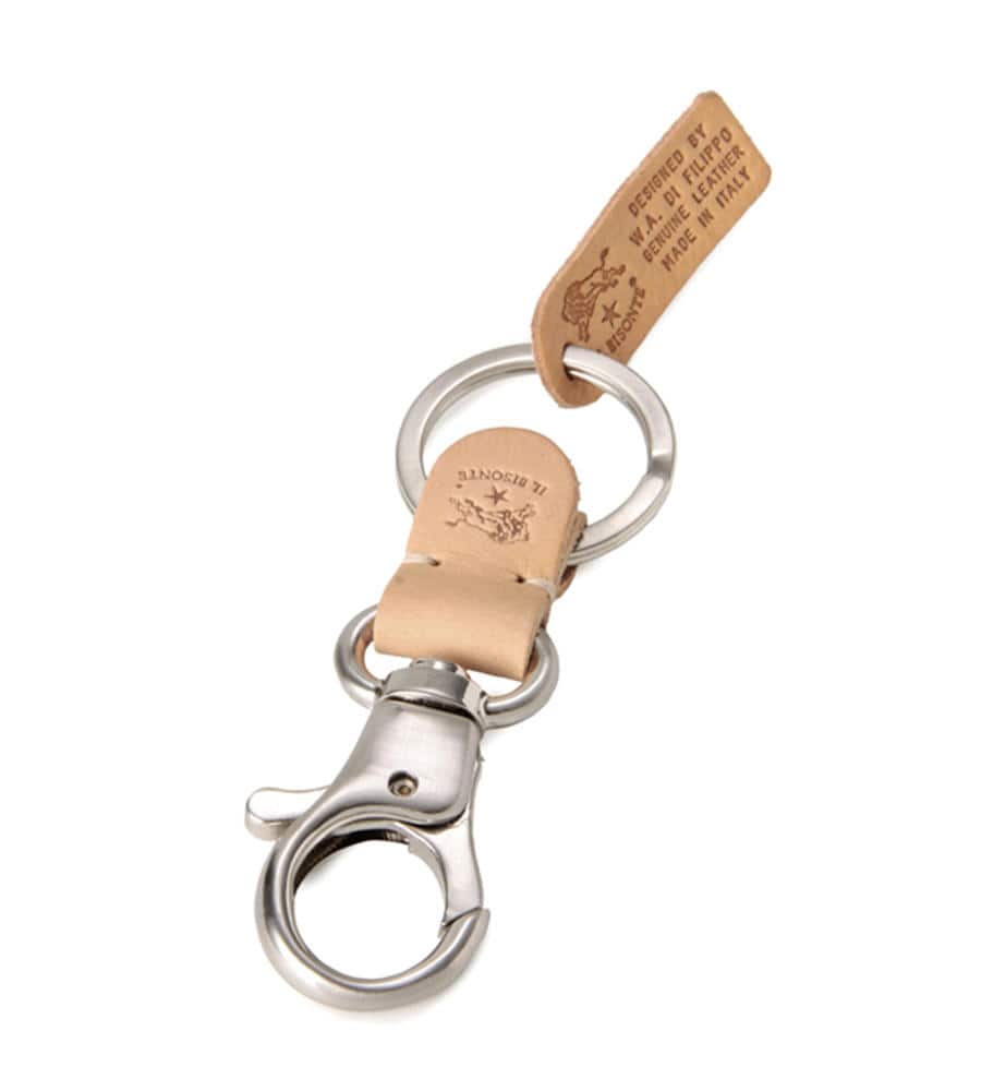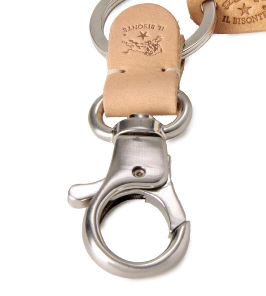 しっかりとした安定感で使い勝手もよく、シンプルで飽きのこないデザインの定番キーリング。大きめのナスカンは、バックやベルトループに取り付けやすく重宝します。プレゼントとしても人気のあるアイテムです。